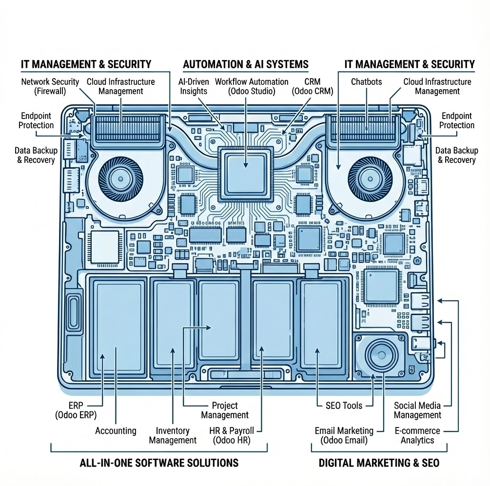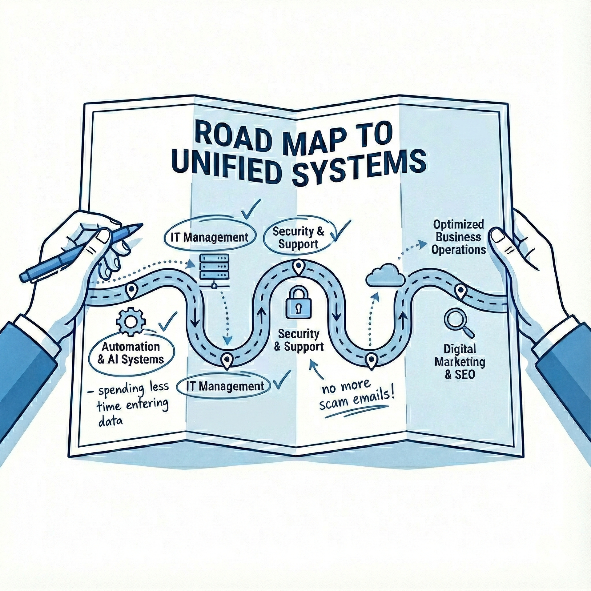 If your tools feel disconnected, your repeated workflows are manual, or you’re juggling multiple vendors, we can help.