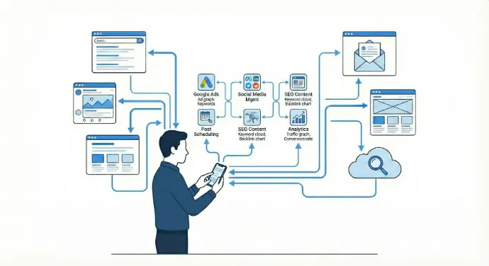 - Single service delivery (IT support, SEO, ads, automation, web development)